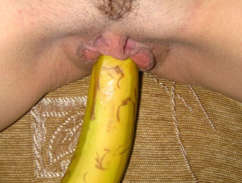 Порно фото похожее на Игра с бананом довела её до оргазма: