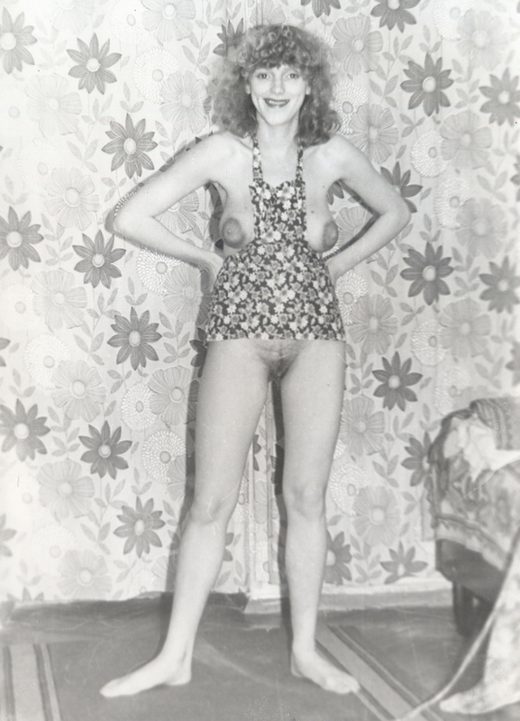 Порно фото похожее на Ретро снимки голой особы на фоне шторы: