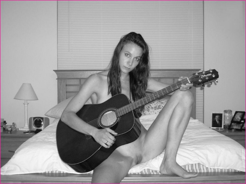 Порно фото похожее на Гитаристка дрочит киску дилдо на постели: