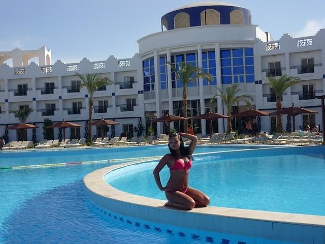 Красивые девушки на берегу моря и возле бассейна в бикини
