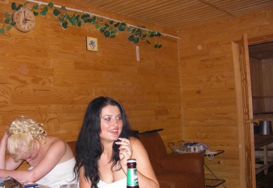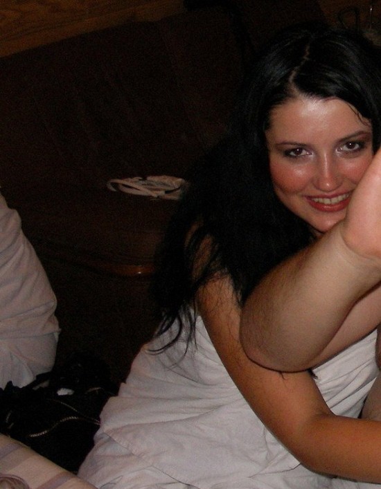 Пьяная сучка позирует перед камерой в чулочках