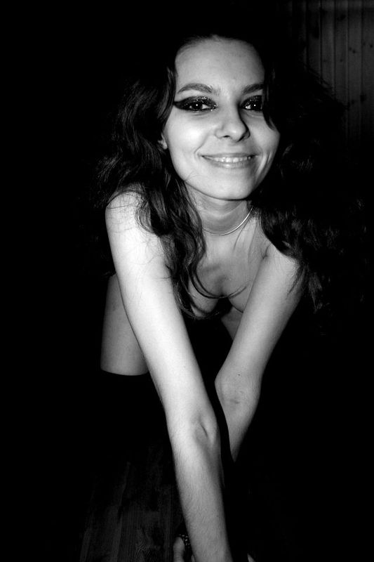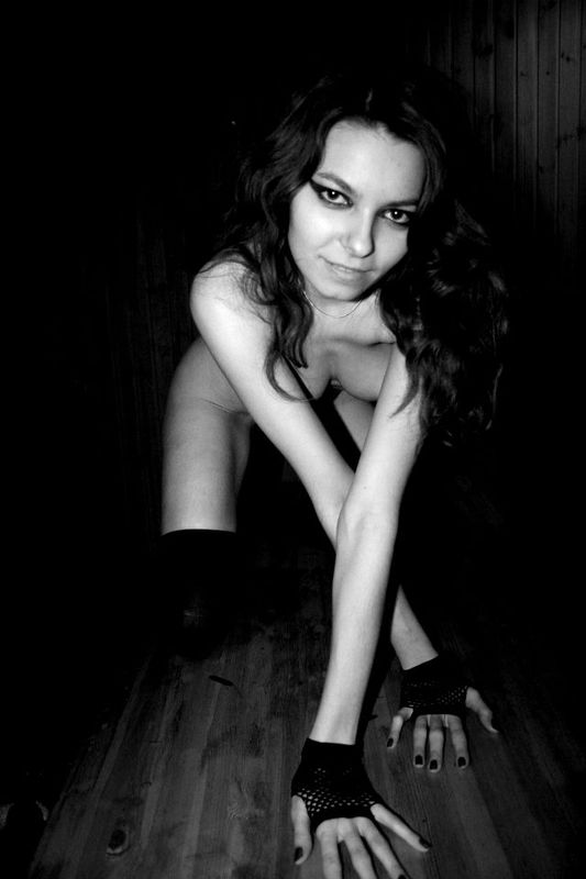 Порно фото похожее на Черно-белые снимки обаятельной брюнетки с чулочками: