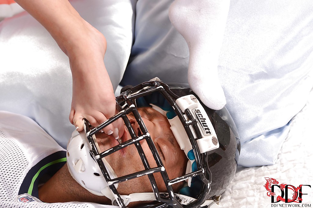 Порно фото похожее на Возбужденные фетишисты две чирлидершы дрочат ногами перед трахом: