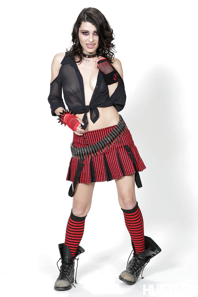 3. Готесса Raven Rockette с клыками раздевается в студии
