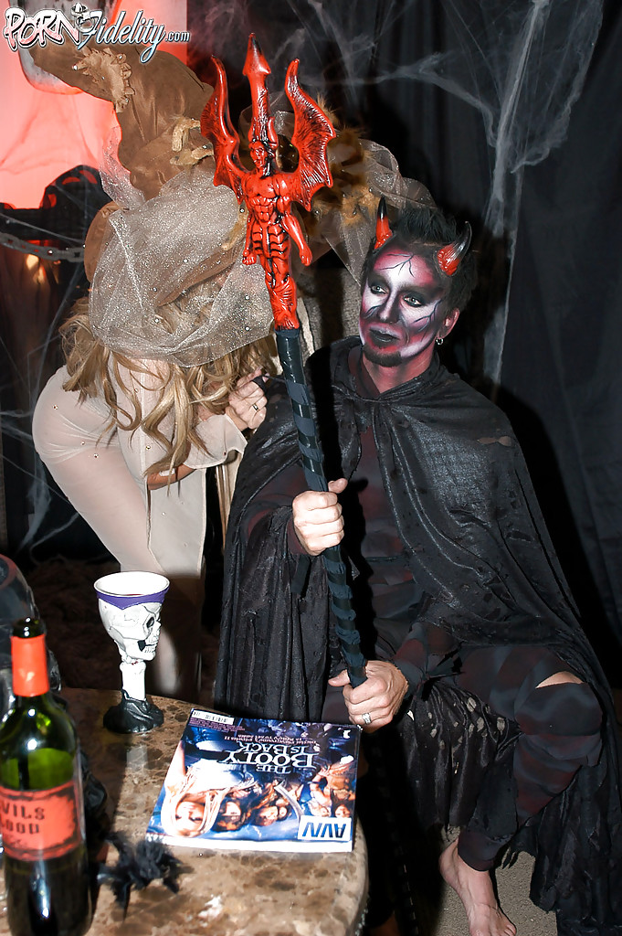 Порно фото похожее на Секс втроем с двумя зрелыми ведьмочками во время Хеллоуина: