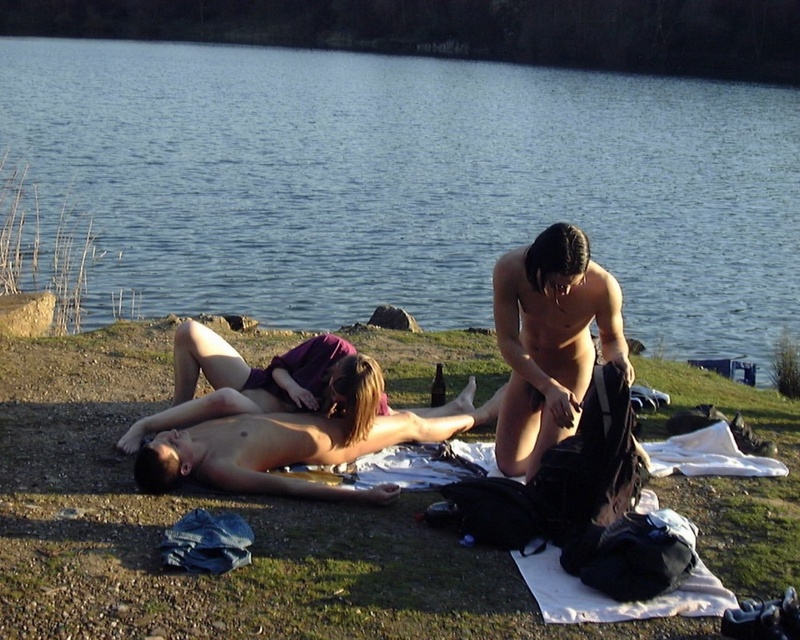 Порно фото похожее на Молодая давалка отдалась парня на озере: