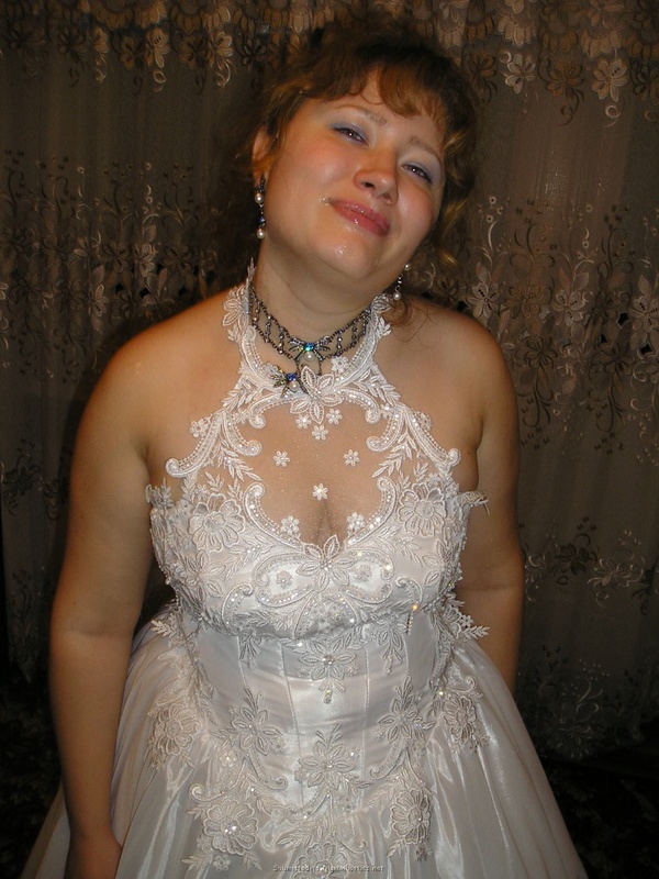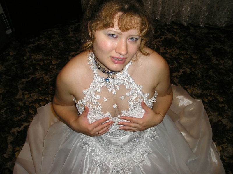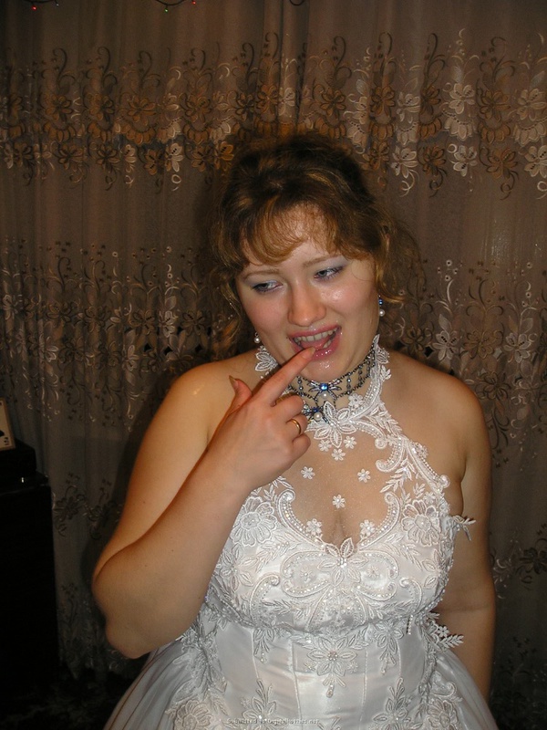 Порно фото похожее на Пухлая баба в свадебном платье сосет фаллос: