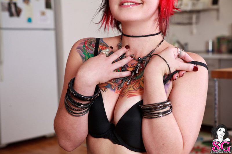 Порно фото похожее на Татуированная крашенная бунтарка хочет потрахаться: