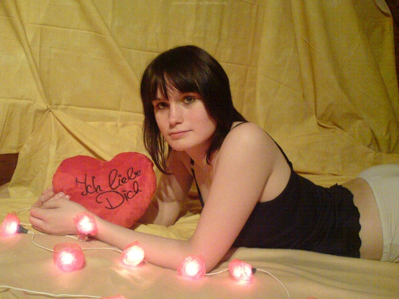 Брюнетка разделась для парня на чердаке в день Святого Валентина