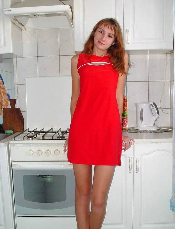 Порно фото похожее на Русская домохозяйка сняла красное платье и белье на кухне: