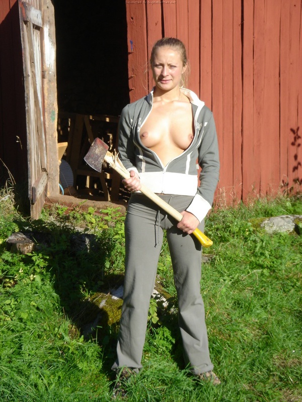 Порно фото похожее на Голая девушка поехала на дачу жарким летом: