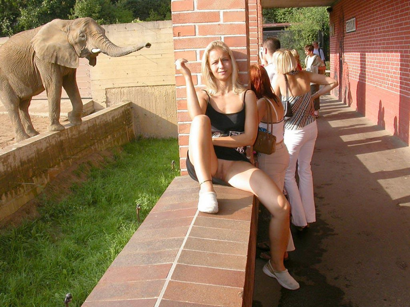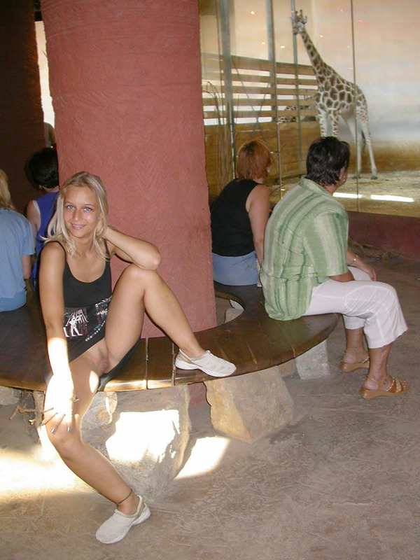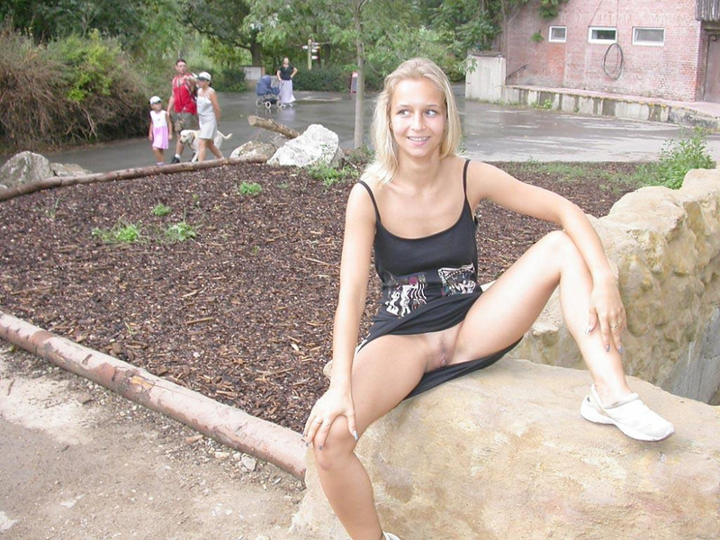 Порно фото похожее на Неосторожная блондинка выставляет сиси и попку на прогулке:
