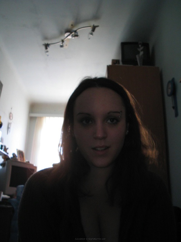 Парень фотографирует голые сиськи пышной студентки с пирсингом в брови