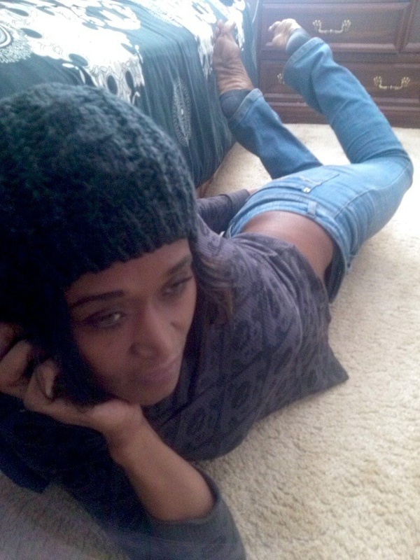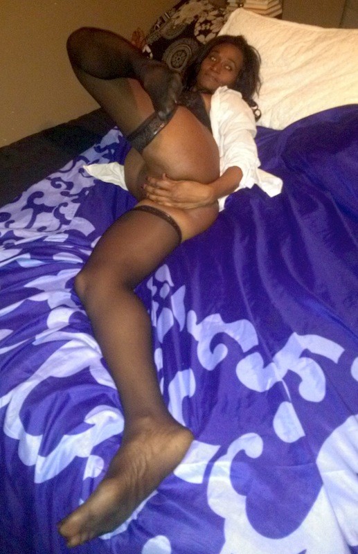 Порно фото похожее на Черная мамочка в чулках мастурбирует на кровати: