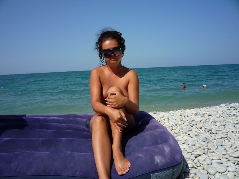 Порно фото похожее на Девушка плавает на надувном матрасе на пляже с нудистами: