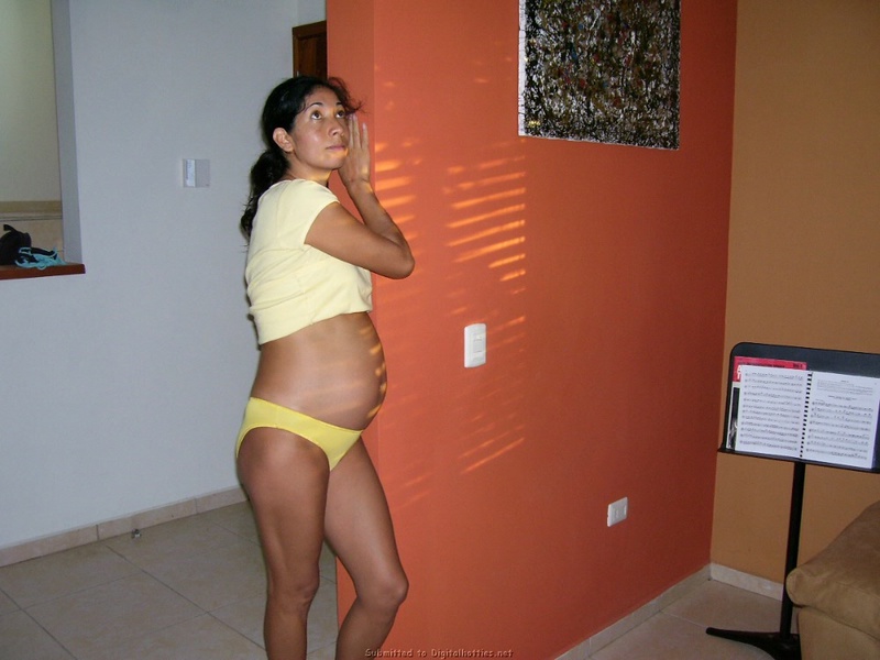 Порно фото похожее на Частные снимки беременной латинки в трусиках дома: