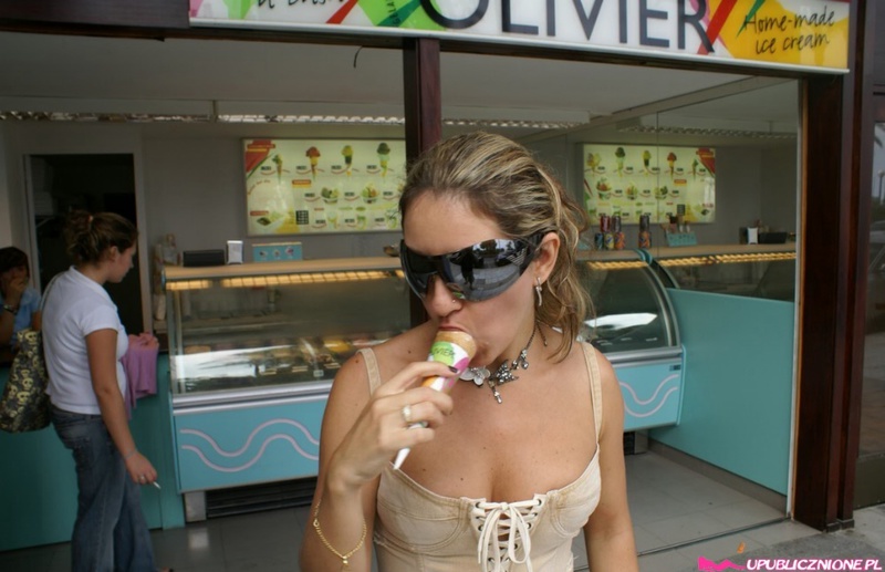 Порно фото похожее на Пошлая блондинка показывает интимные места на людях: