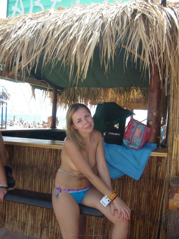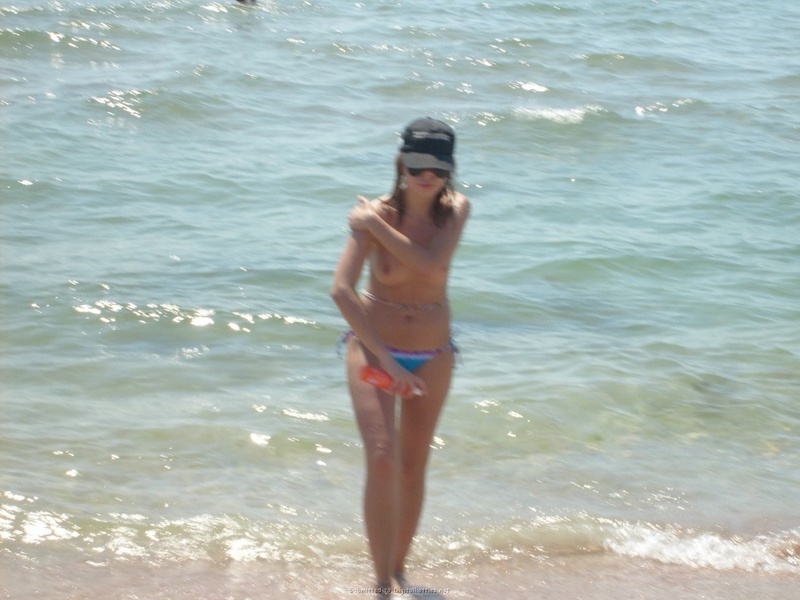 Порно фото похожее на Пошлая туристка загорает на пляже топлес: