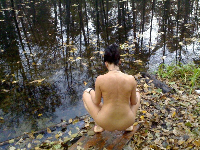 Порно фото похожее на Зрелая брюнетка осталась голенькой на природе: