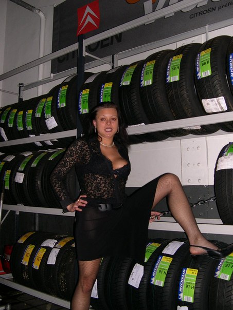 Порно фото похожее на Три мужика шпилят тёлку в чёрных чулках на СТО: