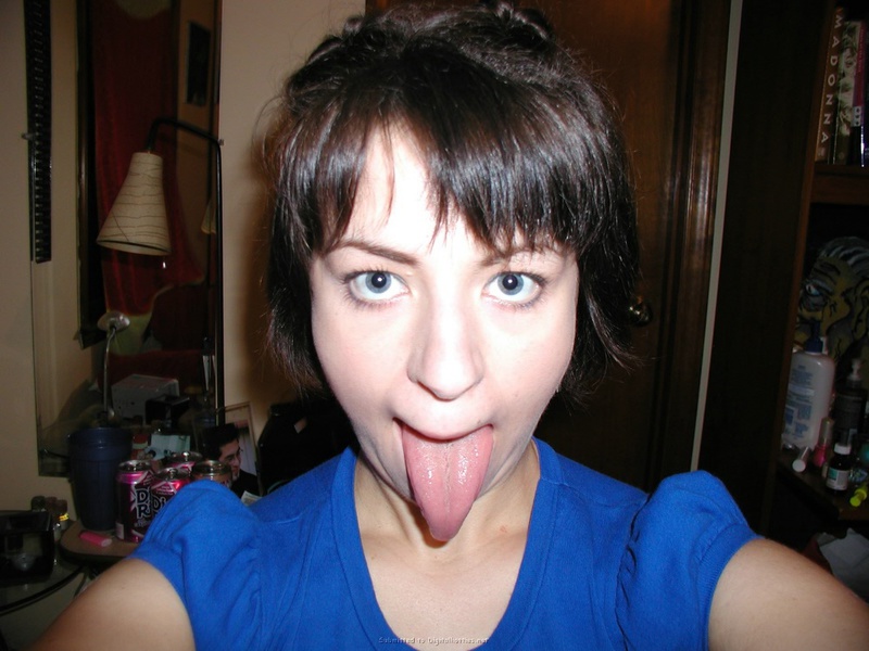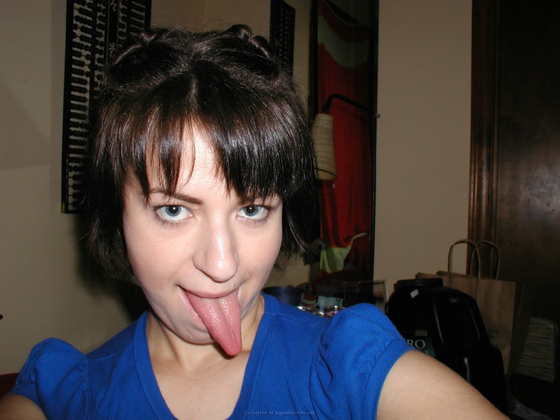Порно фото похожее на Европейская цыпочка позирует с высунутым языком: