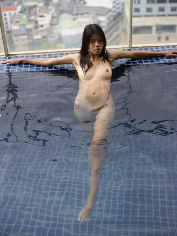 Порно фото похожее на Азиатская девушка шалит в бассейне и на шезлонге: