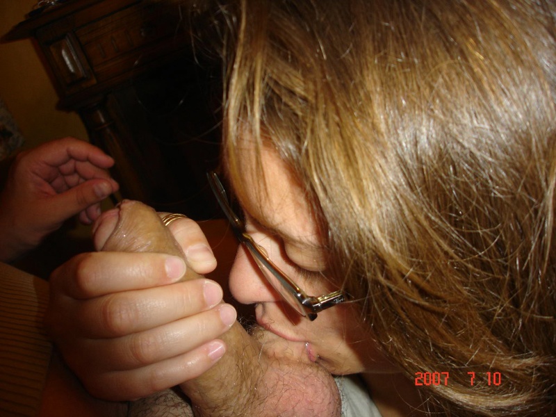 Порно фото похожее на Надела очки и посасывает стоячий член:
