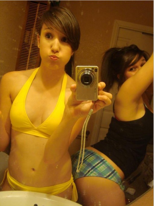 Порно фото похожее на Милашки красуются сиськами перед зеркалом: