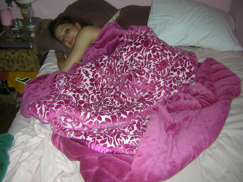 Голая девушка раздвинула ноги на двухспальной кровати