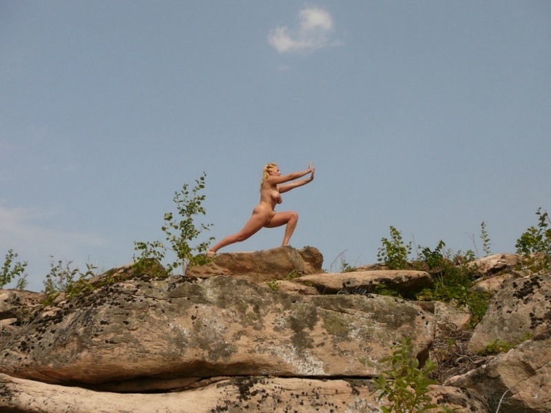 Порно фото похожее на Очаровательная блондинка гуляет по свежему воздуху голышом: