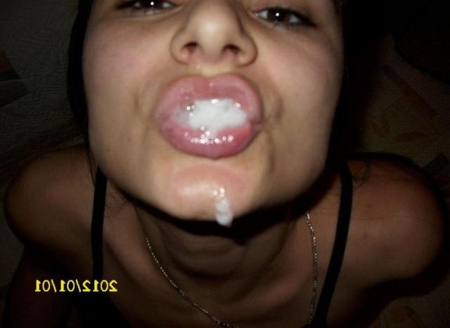 Порно фото похожее на Милашка принимает на лицо сперму после минета бойфренду: