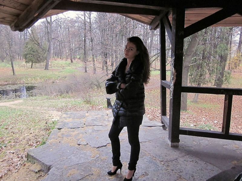 Порно фото похожее на Эксгибиционистка прогуливается по осеннем парку в туфельках: