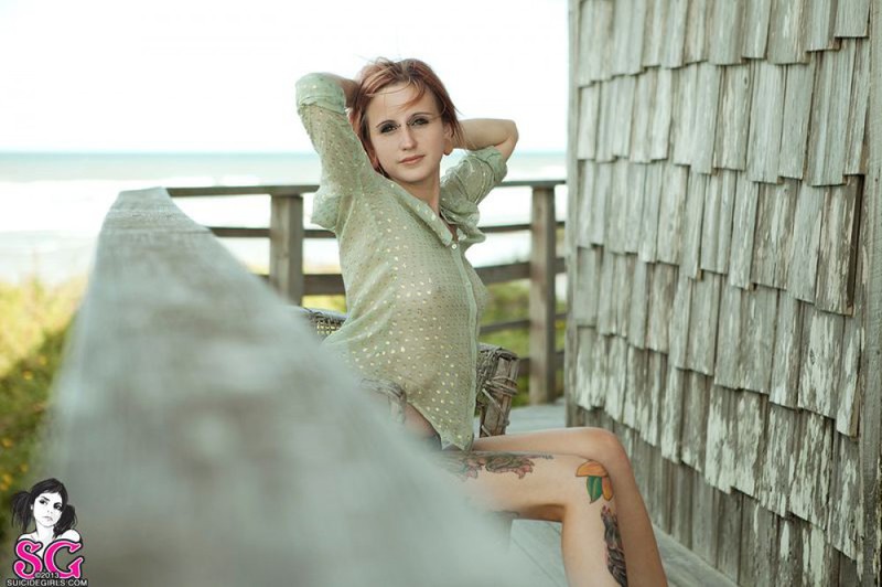 Порно фото похожее на Татуированная чика позирует и дышит свежим воздухом:
