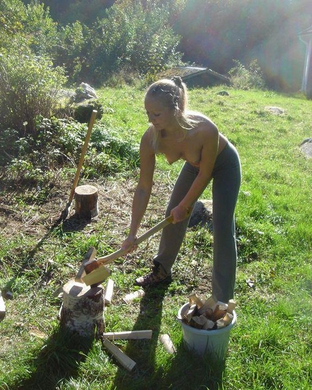 Порно фото похожее на Русская жена колит дрова на даче и ебется с мужем: