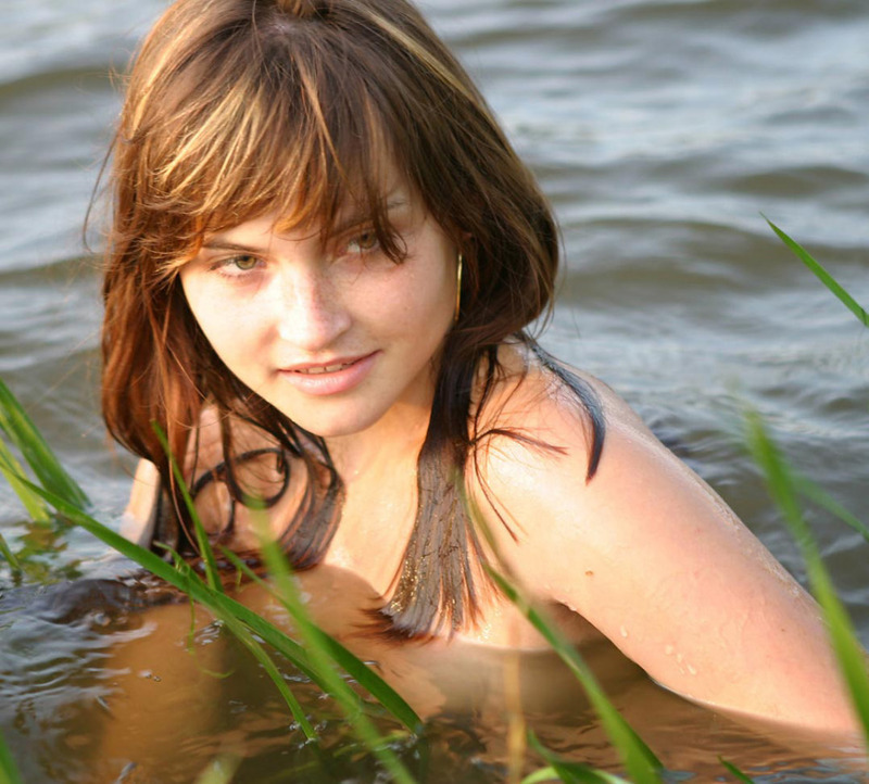 Порно фото похожее на Милая молодая девушка позирует на берегу реки: