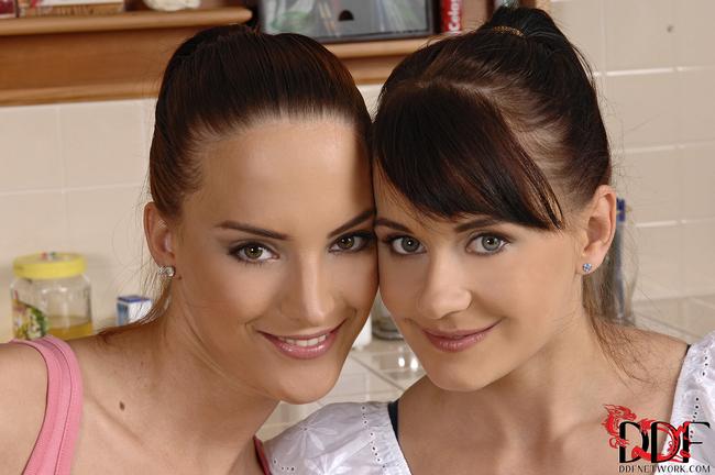 Порно фото похожее на Девушки целуются и делают минет парню на кухне: