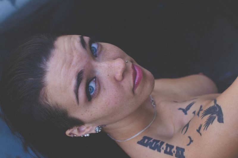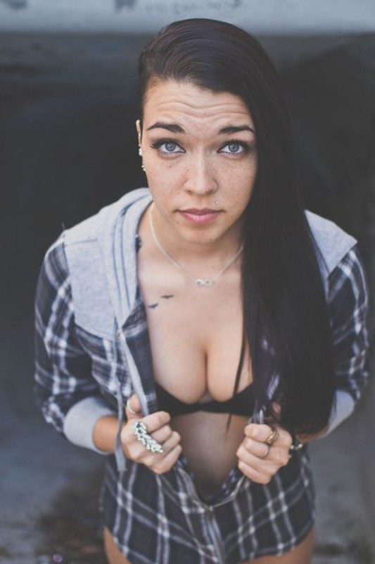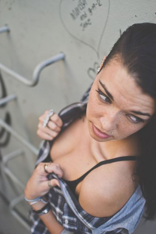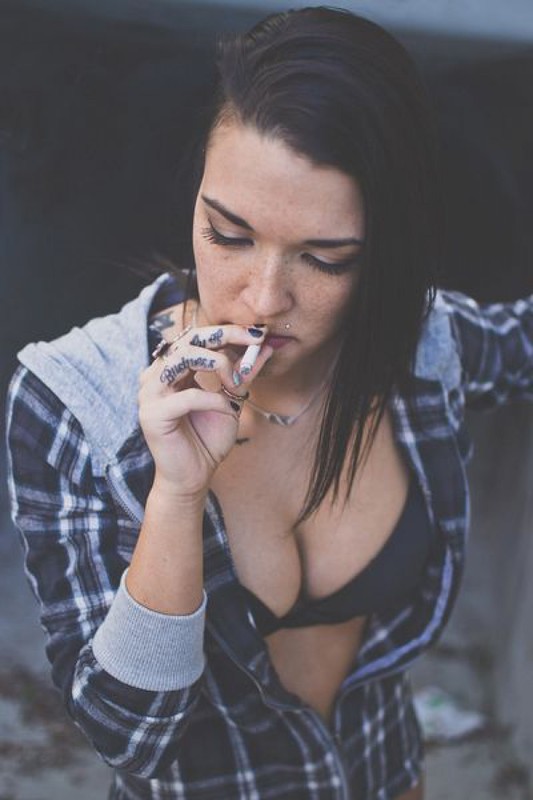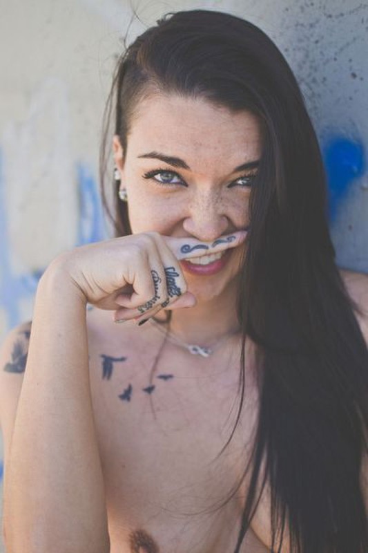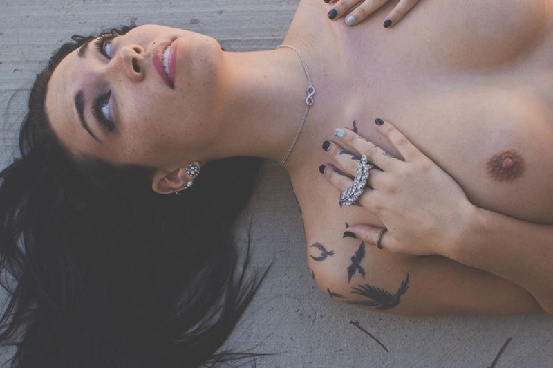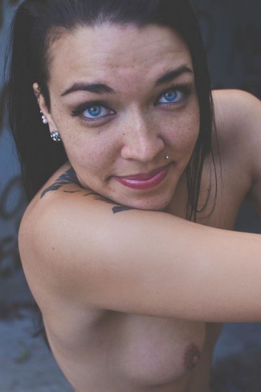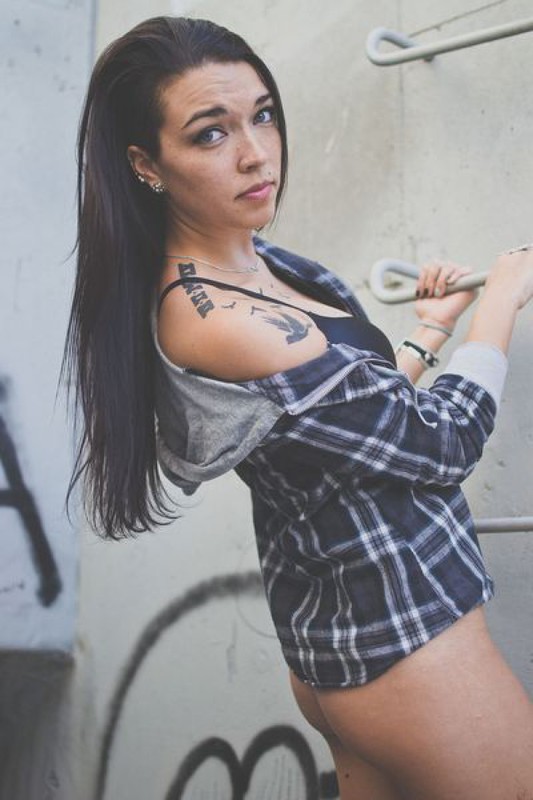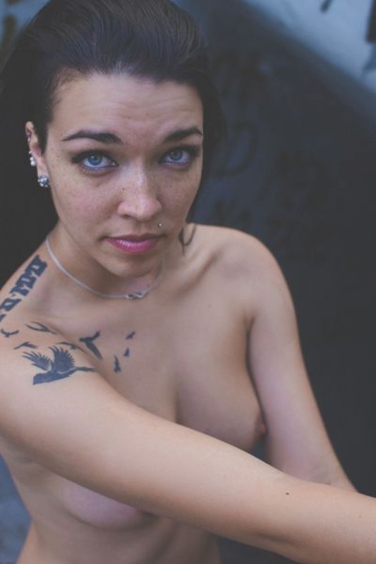 Порно фото похожее на Татуированная неформалка разделась возле бетонной стены: