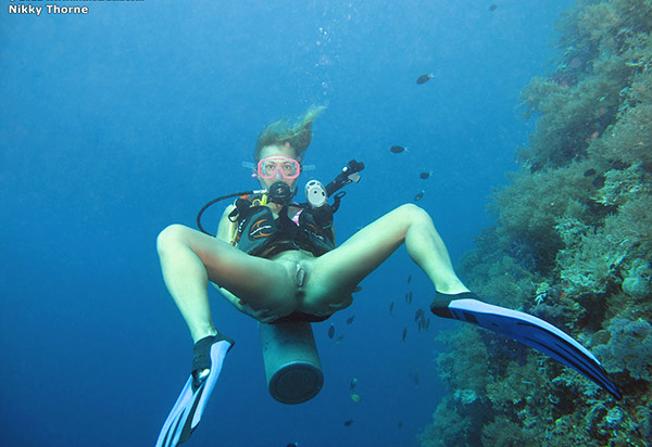Аквалангистка дрочит бритую писю в недрах океана