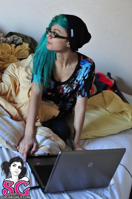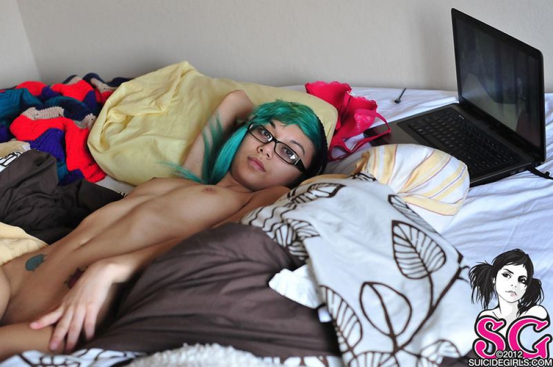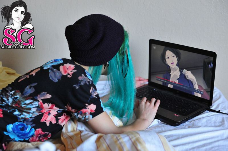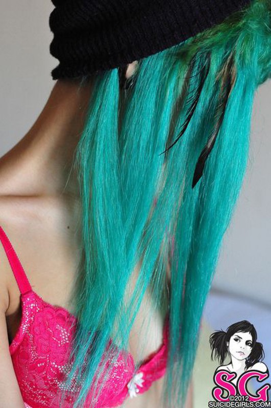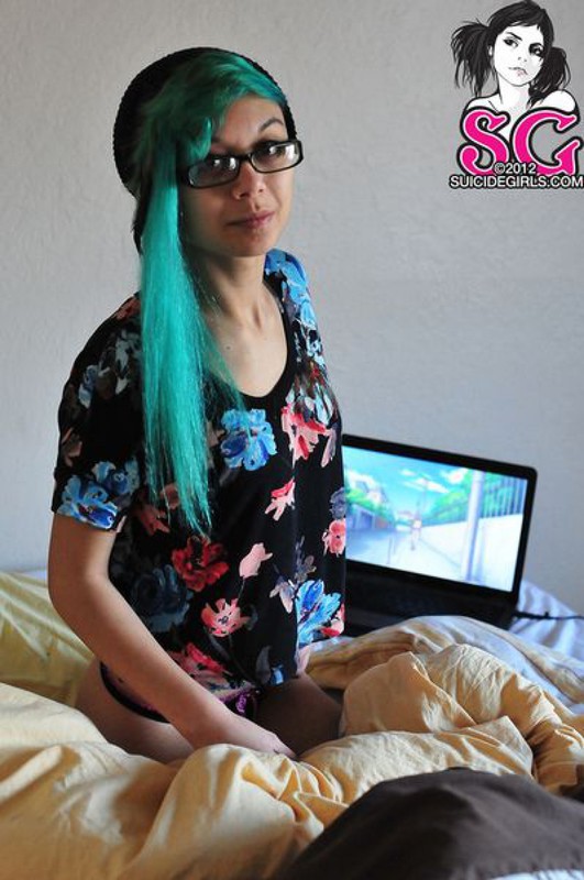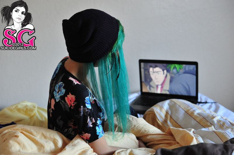 Порно фото похожее на 18летняя анимэшница с зелеными волосами разделась на постели: