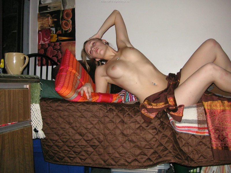 Порно фото похожее на Голая девушка позирует у себя дома на кровати: